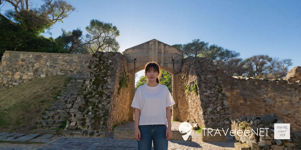 - 城門越しに見える石畳の街並みが写真映え