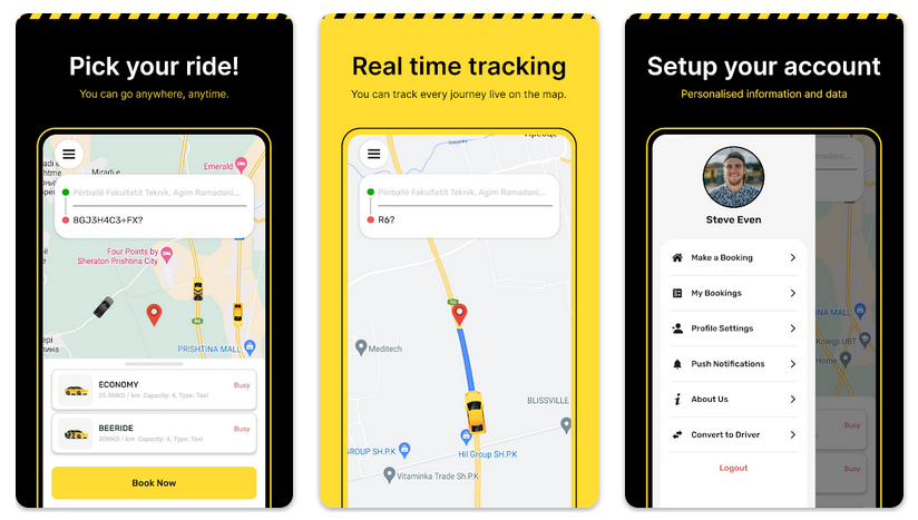 Skopje(スコピエ)で利用されるローカル配車アプリ。リアルタイムで車両位置を確認したり、簡単にタクシーを呼べます。