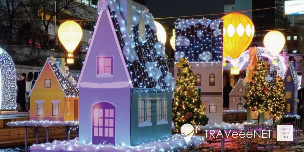 ソウル中心部を流れる「清渓川」は、毎年冬に幻想的なライトアップが施される定番スポット。